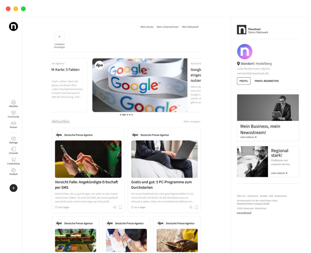 Nach dreijähriger Entwicklungszeit launcht die Contiago GmbH mit Newsload eine bahnbrechende Software, die mit einem Seed-Investment der Deutschen Presseagentur (dpa) gefördert wurde. Newsload setzt vor allem bei der Content-Verbreitung und Contnet-Nutzung neue Maßstäbe. Denn auf Basis der Newsload-Software entstehen innovative digitale Plattformsysteme, gefüttert von Verlagen, genutzt von Verbänden, Netzwerken, Kommunen und Unternehmen.